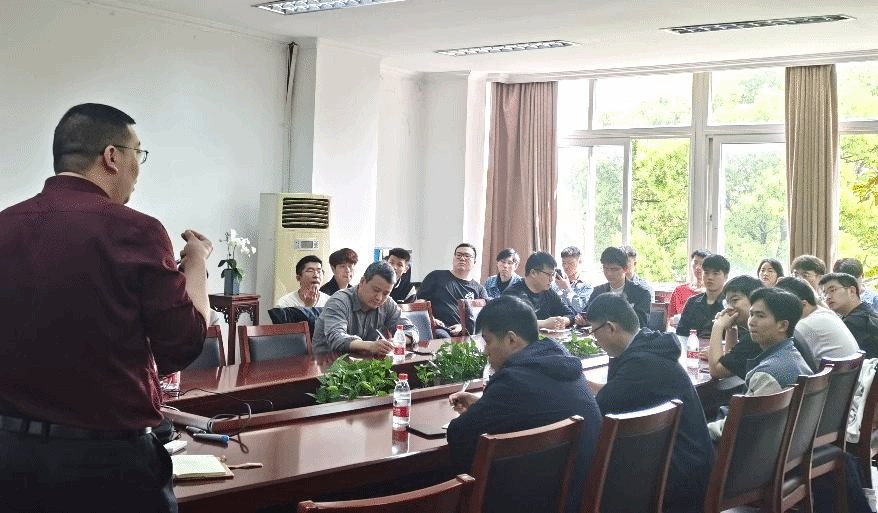 教授张超在绣山工程楼208会议室作关于“等离子喷涂耐磨减摩复合涂层的研究”的学术报告。
