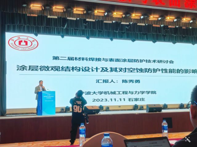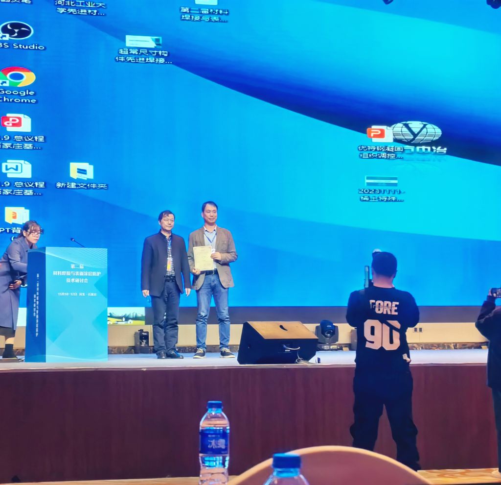 陈秀勇教授担任第二届材料焊接与表面涂层防护技术研讨会大会主席,并作了题为“涂层微观结构设计及其对空蚀防护性能的影响”的报告。任潞副教授担任分会场主席,并作了题为“非晶纳米晶Ni-P基镀层的设计、制备及其应用”的报告,研究生叶鑫宇、徐坤、桂雄辉、吴浩、段飚汉、陈琴琴分别作了题为“激光喷涂颗粒沉积机理研究”、“激光熔覆300M钢涂层研究进展”、“碱性电解水制氢等离子涂层制备与催化性能研究”、“基于机器学习的高硬度铁基涂层成分优化与性能研究”、“金属薄膜电容器喷金层界面结合与电性能调控”、“激光喷涂多孔镍涂层催化性能的初步研究”的分会报告。