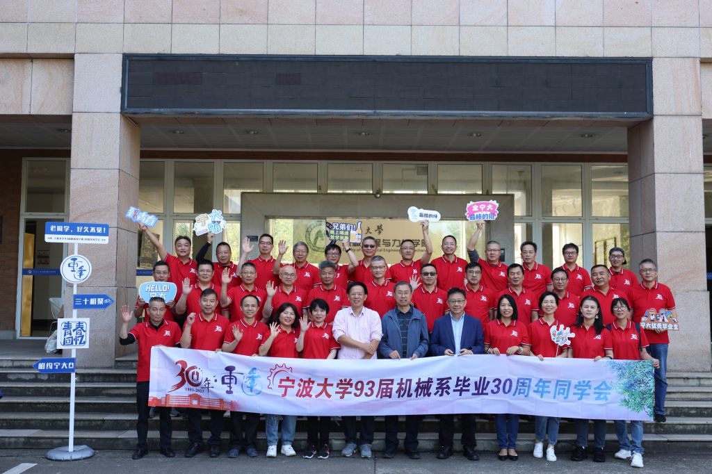 绣山工程楼前汇合,互相寒暄家长里短,领取了自己那份30周年小礼物,在大大的签名墙上与分别多年的昔日同窗签下了自己的名字。“最棒的班!”30周年第一张合影时,他们喊出的话语透露着的是他们激动的心情,是30年依旧不变的宁大学子的自豪感。