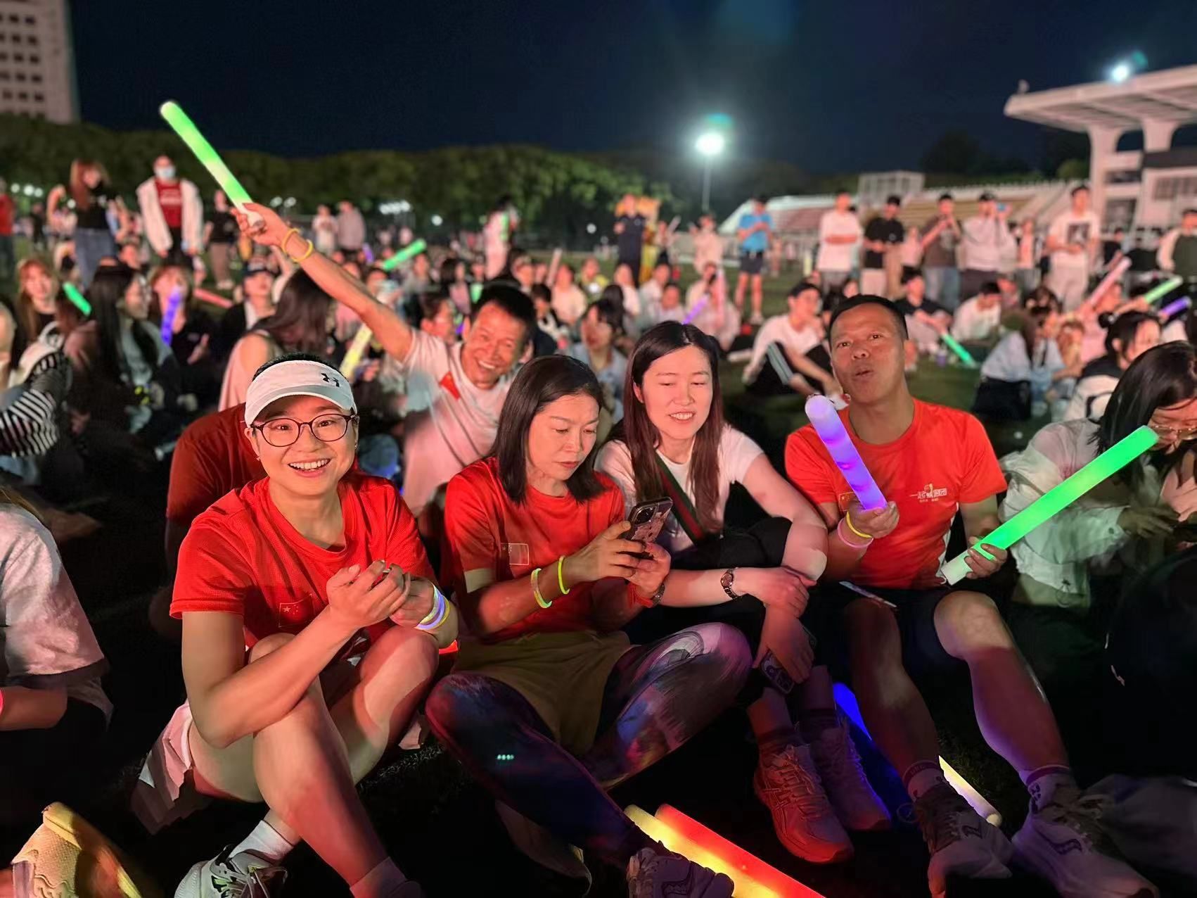活动现场,十余位校友们与在校同学们欢聚一堂,共同感受这份特别的校园情怀。夜跑现场搭建了音乐舞台,精彩节目轮番上演,校友们纷纷席地而坐,跟随着节奏与同学们一起挥舞着荧光棒。现场气氛热烈,掌声与欢呼声此起彼伏。还有的校友们带来了“宁二代”,小朋友们与“奥特曼”大队、U体育网