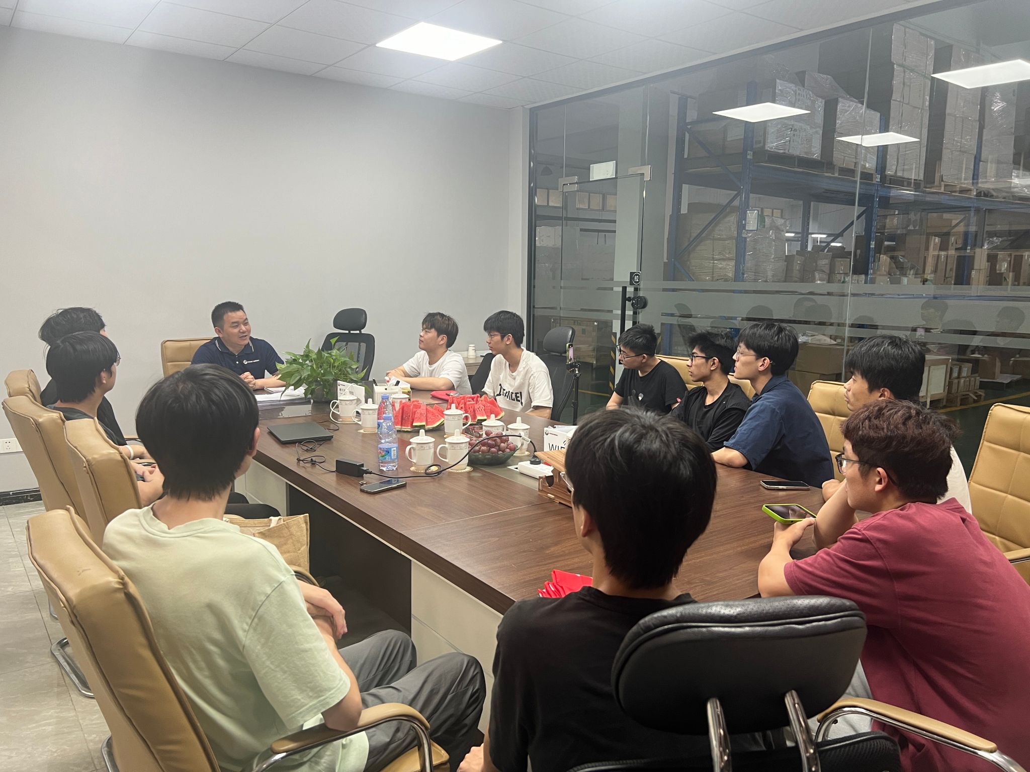 校友会理事、创新创业导师、公司总经理陈胜热情接待了师生一行人,并带领大家参观了公司。