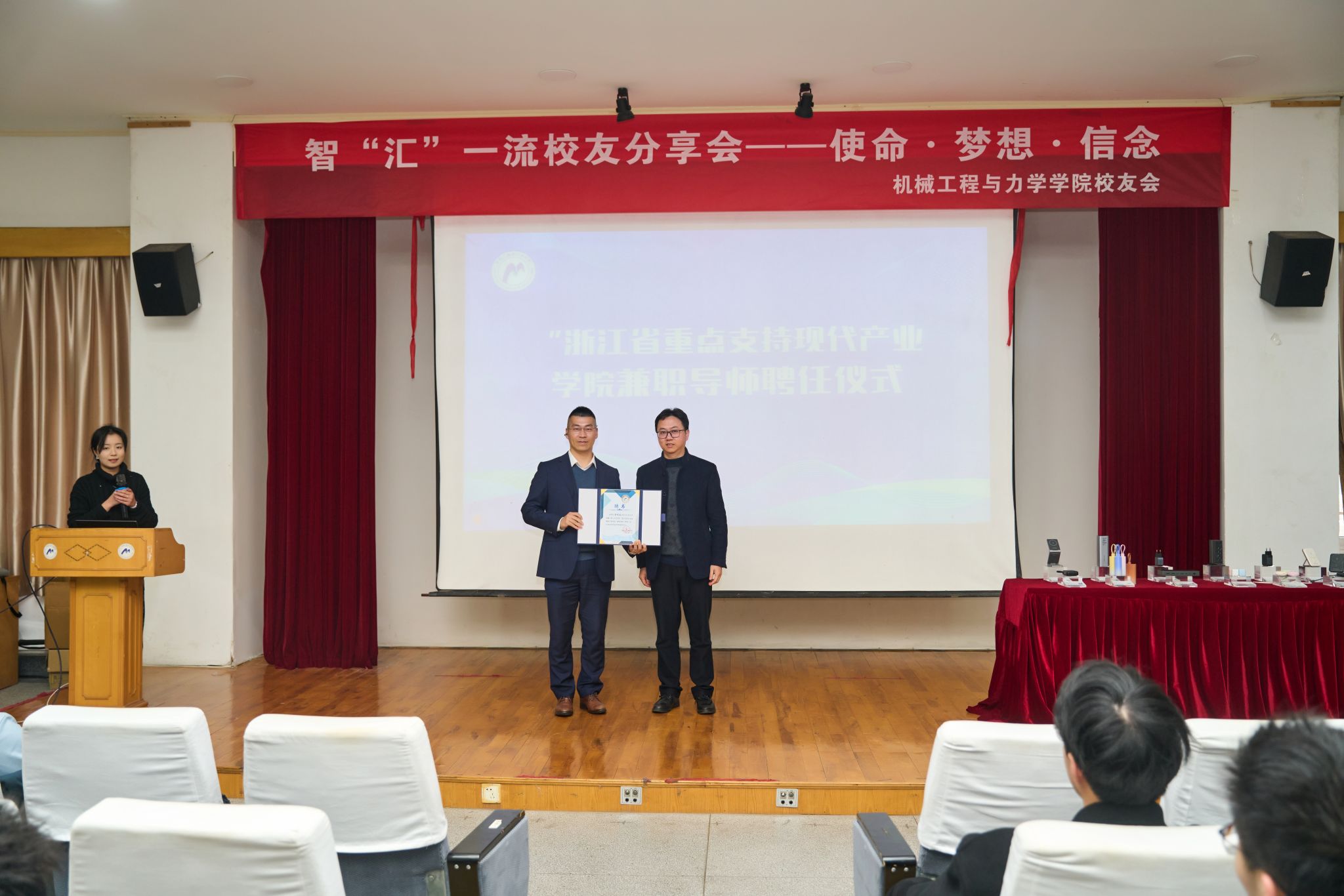 向黄颂志师兄颁发了第一份聘书——“浙江省重点支持现代产业U体育网