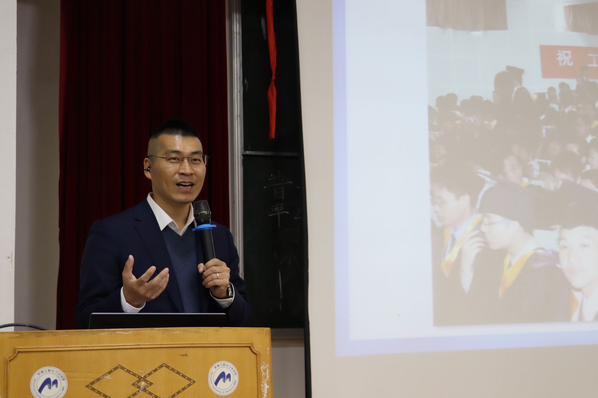 随后,在题为“使命·梦想·信念”的主题分享中,黄颂志师兄通过一组校园老照片,瞬间将同学们带回千禧年初的宁大岁月。“2005年毕业时,我就立下两个志向:既要让个人成长与国家发展同频共振,更要让中国制造在国际舞台绽放光彩。”这位深耕精密制造领域二十载的创业者,用朴实的语言勾勒出跌宕起伏的创业图景。他特别提及了2017年企业遭遇重大困难时的艰难抉择,以及他如何再次返回母校,坚定初心,抱着让中国“智”造强起来的梦想继续前行。黄师兄用亲身经历诠释了坚持初心的重要性,他的信念如同灯塔一般,指引着他在创业路上不断前行。