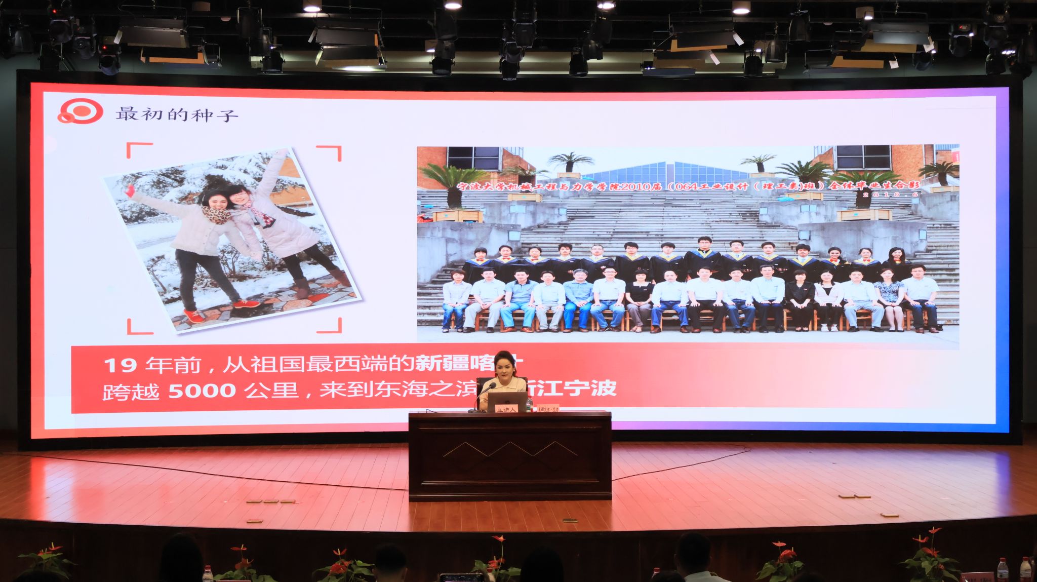 首批新疆籍毕业生,米娜瓦尔·艾力老师以《追光的日子》为题,深情讲述了自己从新疆边陲小镇出发,成长为一名高校思政工作者的不凡历程。曾获评全国民族团结进步模范个人、全国三八红旗手、新时代青年先锋奖等多项国家级荣誉的她,用亲身经历诠释了奋斗的价值。她创立的“米娜工作室”犹如一座灯塔,照亮并助力数百名少数民族学生成长成才的故事,深深打动了在场的每一位学子。当新疆籍毕业生提出“如何面对西部计划志愿者工作的挑战?”“留甬还是回疆?”等现实困惑时,米娜老师以温暖的微笑和饱含智慧的建议,给予了学弟学妹们最坚实的精神支撑,传递出校友对后来者深切的关怀。