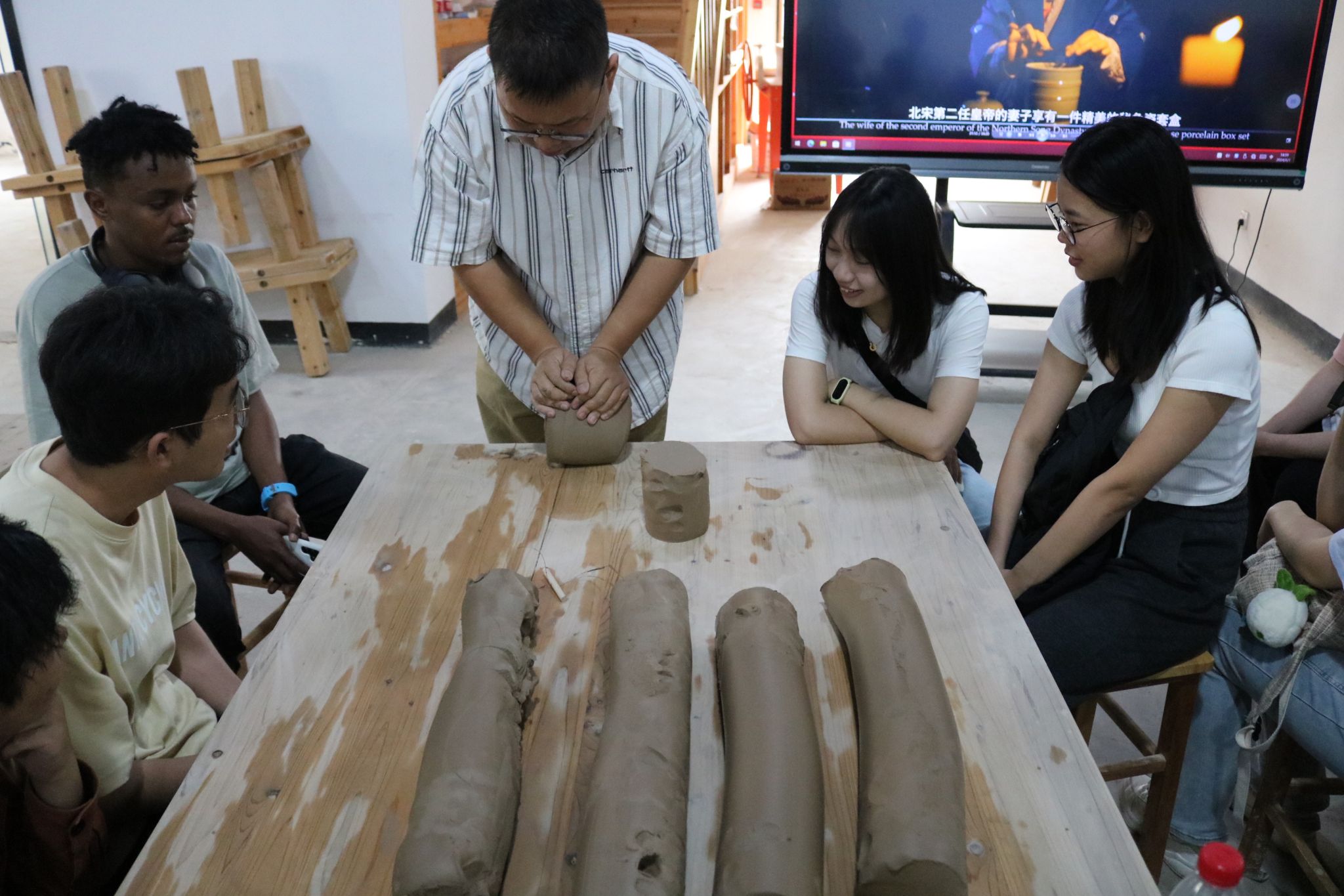 随后师生们在陶艺老师的指导下从揉泥、拉胚开始,手拢泥巴,脚踩踏板,静心沉浸,细心雕琢,展现天马行空的想象力,做出各种形态的碗、盆、杯子,用双手感受青瓷文化。越窑青瓷,不仅是母亲瓷,也是世界瓷。机械U体育网 国际学生们也在制作青瓷中深刻感悟到了越窑青瓷文化韵味和匠心精神,把友好的情谊融进青釉。