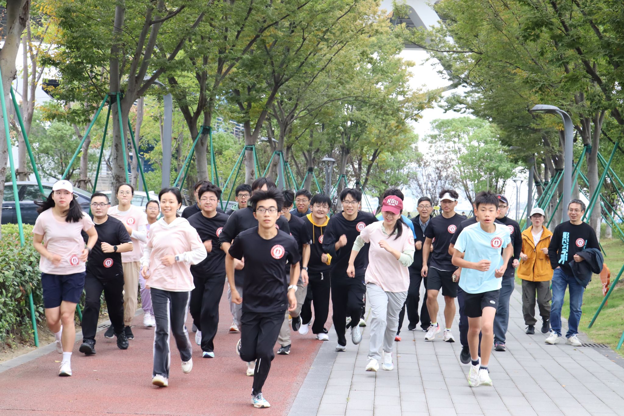 上午9时,乐跑活动正式拉开帷幕。队伍沿着风景如画的江岸步道迤逦而行,形成了一道亮丽的流动风景线。大家身着统一的纪念服装、贴着纪念袖章,精神抖擞,步伐矫健。