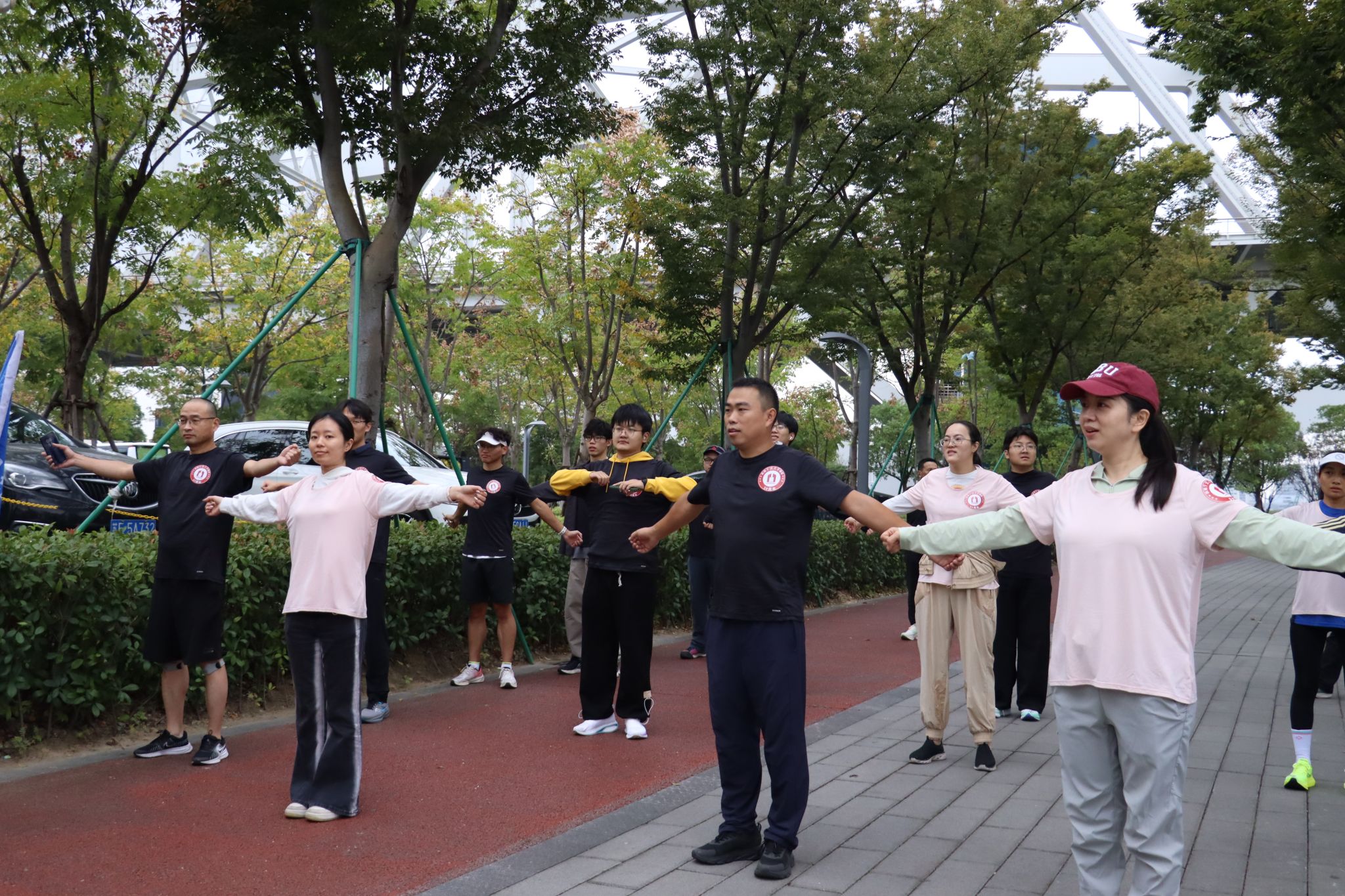 清晨的滨江公园沐浴在温暖朝阳之中,波光粼粼的江面与对岸校园建筑遥相呼应,唤起了大家对校园时光的美好回忆。活动签到处气氛热烈,教职工与校友亲切交流,欢声笑语不断。