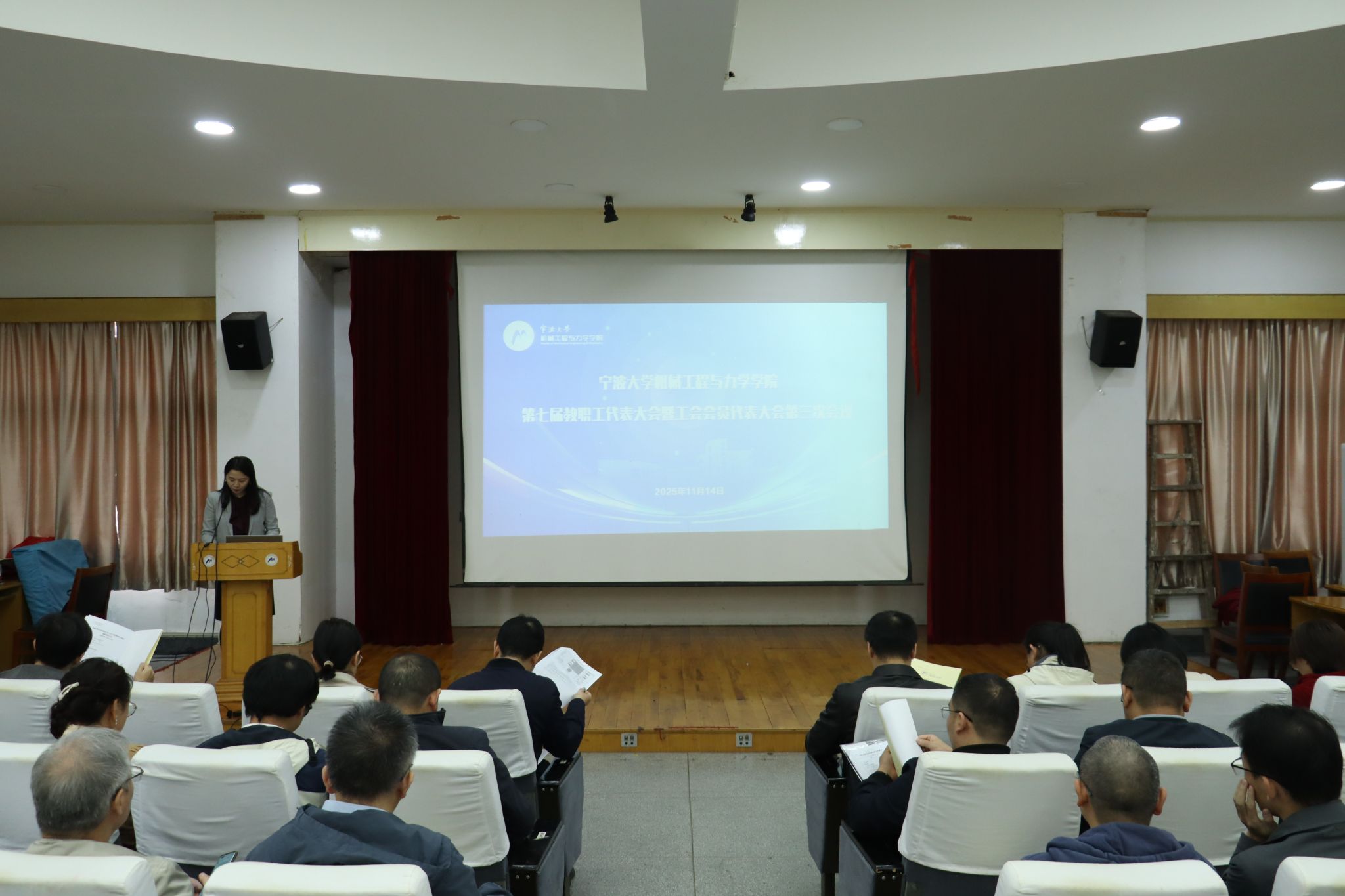 第七届教职工代表大会暨工会会员代表大会第三次会议在绣山工程楼3楼报告厅举行,会议由分工会主席沈妍伶主持。