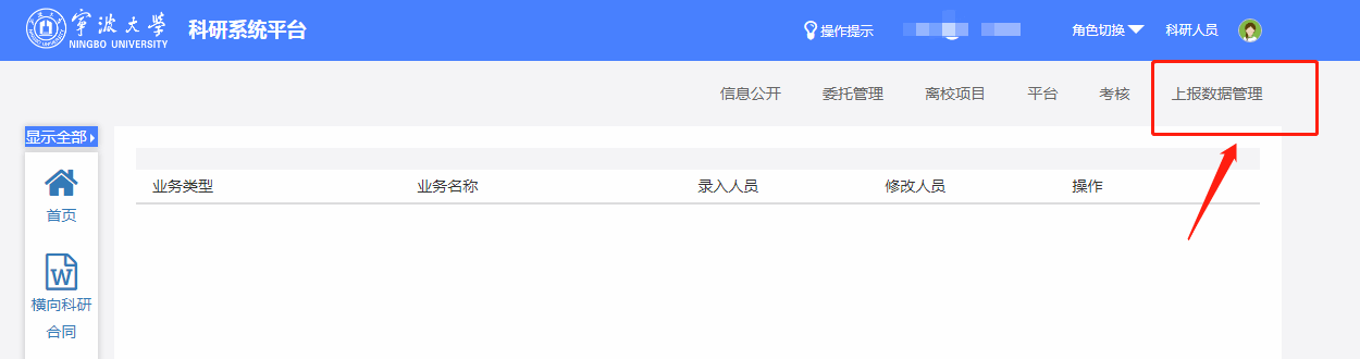 主要涉及到2023年新立项的科研项目,请各位老师登录科研服务管理平台及时维护上报数据,在系统U体育点击上报数据管理,维护2023年新立科研项目的相关学科信息、服务的国民经济行业、社会经济指标、R&D活动类型和投入的人年数、博士生硕士生人数等数据。