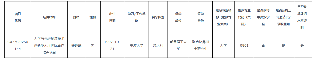 国家留学基金委创新型人才国际合作培养项目第二批拟推荐人员公示