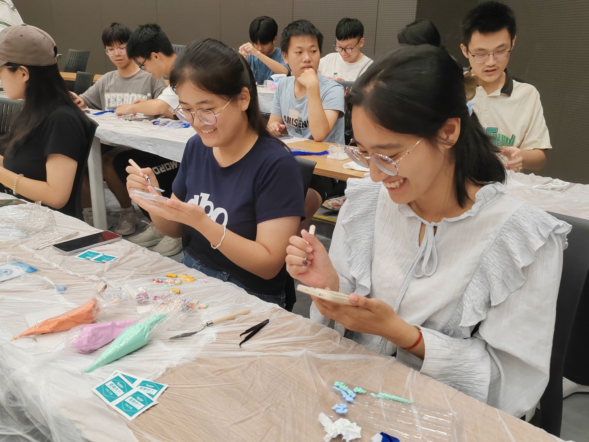 最后,"奶油胶手机壳创意制作"主题破冰活动正式开启。通过动手实践,大家不仅增强了团队协作能力,还激发了创造力,实现了寓教于乐的目的,有效地促进了新生之间的相互了解和信任,营造了一个团结友爱的氛围。