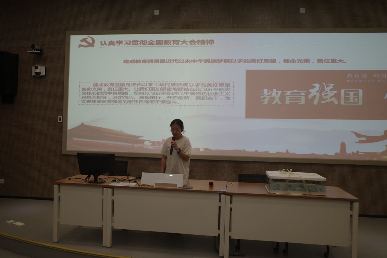 大会开篇,院学生会秘书长潘婧老师带领大家学习了全国教育大会精神,指导大家树立明确的学习目标和人生规划。