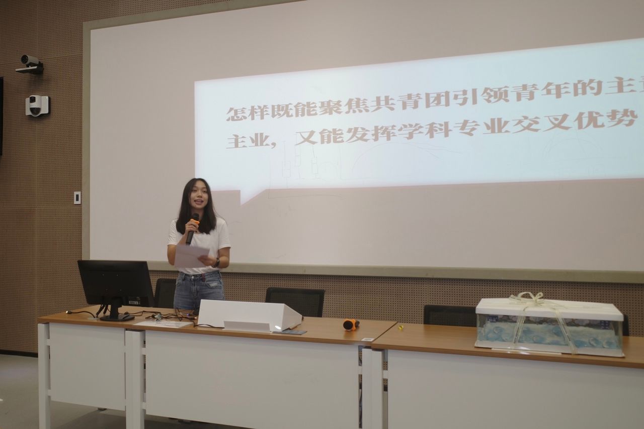 团委书记晏程程老师给大家带来了十二字寄语--“向下扎根,向外延伸,向上求索"。短短十二字激励着团委和学生会的干事们脚踏实地、拓展视野、不懈追求,在学业和个人发展中不断攀登高峰,追求卓越。