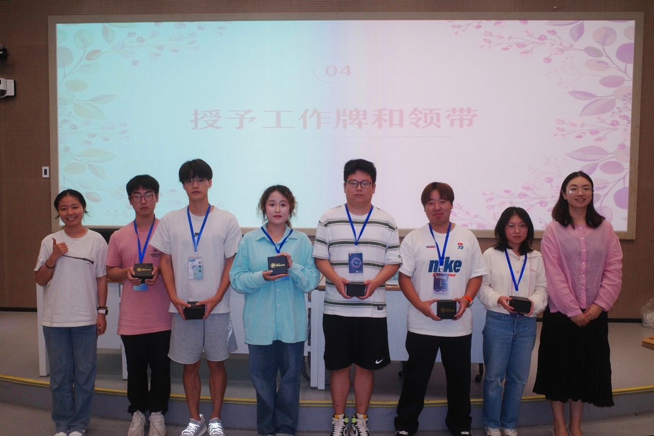 在“授予工作牌”仪式环节,各部门主席、部长和干事们先是各自进行了自我介绍,然后由团委书记晏程程老师、学生会秘书长潘婧老师正式授予工作牌。这不仅是对团学工作者辛勤付出的认可,更是责任与荣誉的象征,激励他们在今后工作中继续发挥积极力量。
