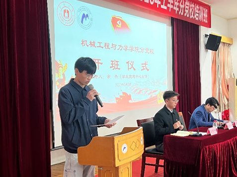 开班仪式在庄严的《国际歌》中拉开帷幕。余杰同志宣读了党校学习要求及考勤制度。董超琪同学代表全体学员发言,郑重承诺将以饱满的热情和实际行动投入到党员培训中,表达了坚定理想信念,增强忧患意识,形成使命意识的决心和目标。