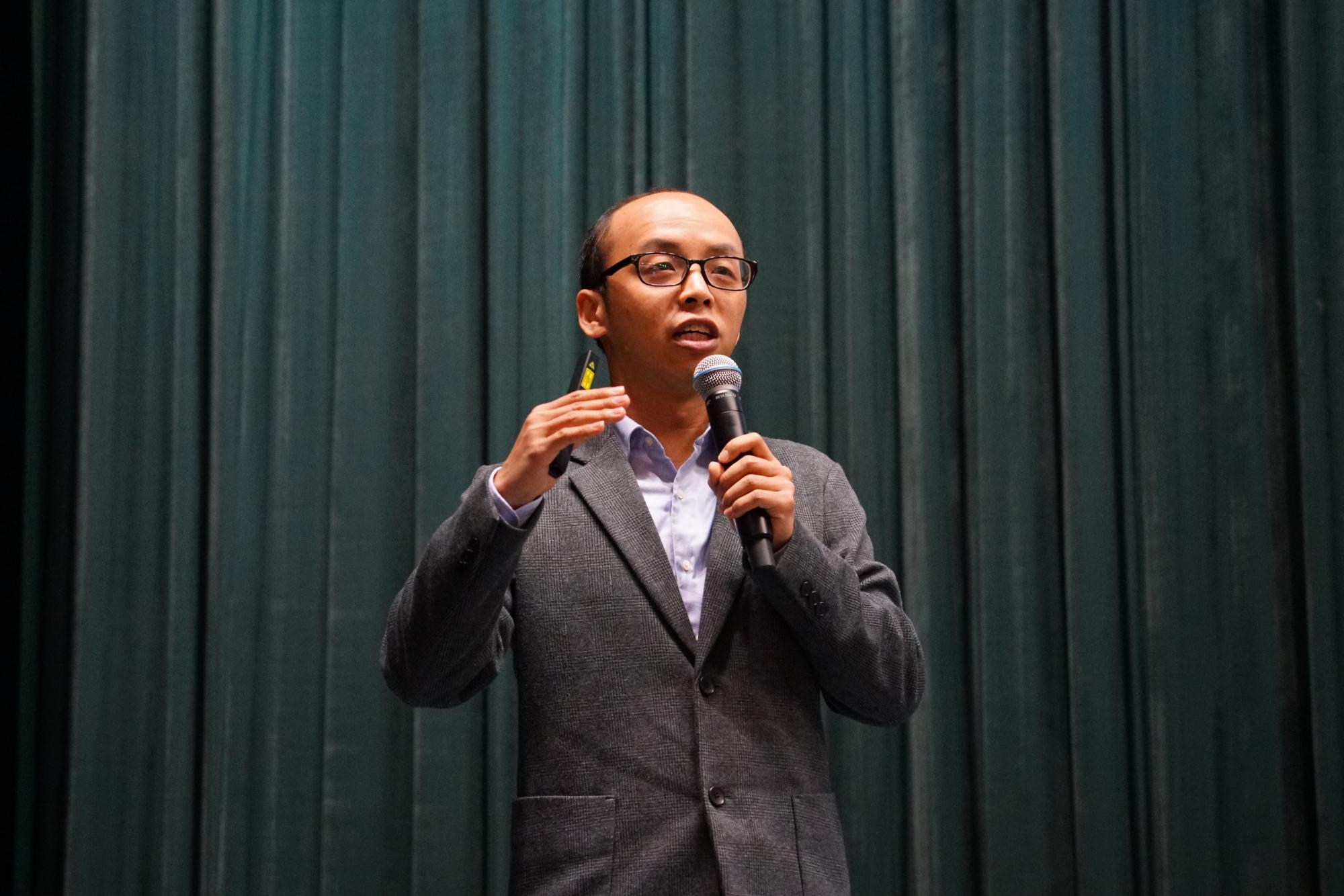 “平语近人”,共话力学。力学科普宣讲团指导老师李科斌,讲解了习近平总书记语录中诗词典故背后隐藏的力学原理,拓展及应用。“云帆若鸟飞”,千帆竞发,形如鸟翅,由于风帆的外形具有像鸟翼一样的弧形,帆船的推进原理又与鸟类的飞行原理基本相似;“倏忽南与北”,逆水行舟,倏忽南北,便是帆船逆风行驶时“之”字路线的由来。李老师以帆为引,寄语同学们,“人生如同行船,不可能总是一帆风顺,每个人都难免会遭遇逆境。在逆境面前,我们千万不要失去斗志,而是应该调整姿态,换个角度,逆风而行,同样可以到达理想彼岸。”