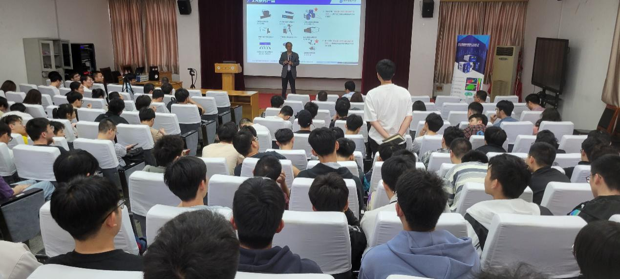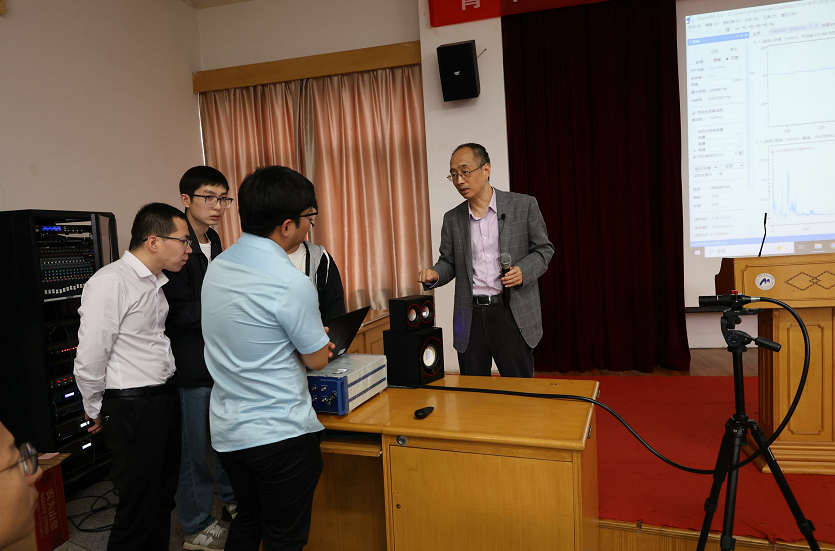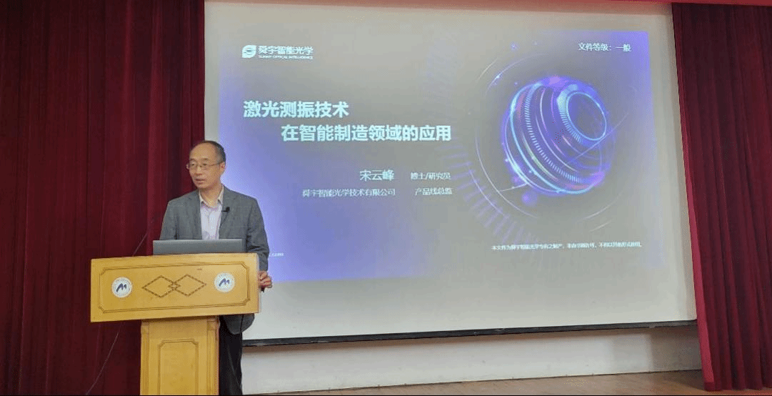 在报告会上,宋博士介绍了振动现象、振动基础知识和重要意义、振动测试技术、以及典型的振动测试案例等内容。并为在场师生介绍了激光测振技术的与智能制造的紧密联系。激光多普勒测振法是目前能够获取最佳位移和速度分辨率的振动测量方法,已被广泛用于基础科学领域。在当今智能制造领域,可广泛应用于汽车振动测试,超声波辐射面振动测量,材料测试,建筑结构,工业电机,精密机床,微纳结构以及仿生结构。现场,宋博士还与参会师生就设备的具体性能、设备未来可能的发展方向等方面进行了充分的交流讨论。此次报告对U体育网