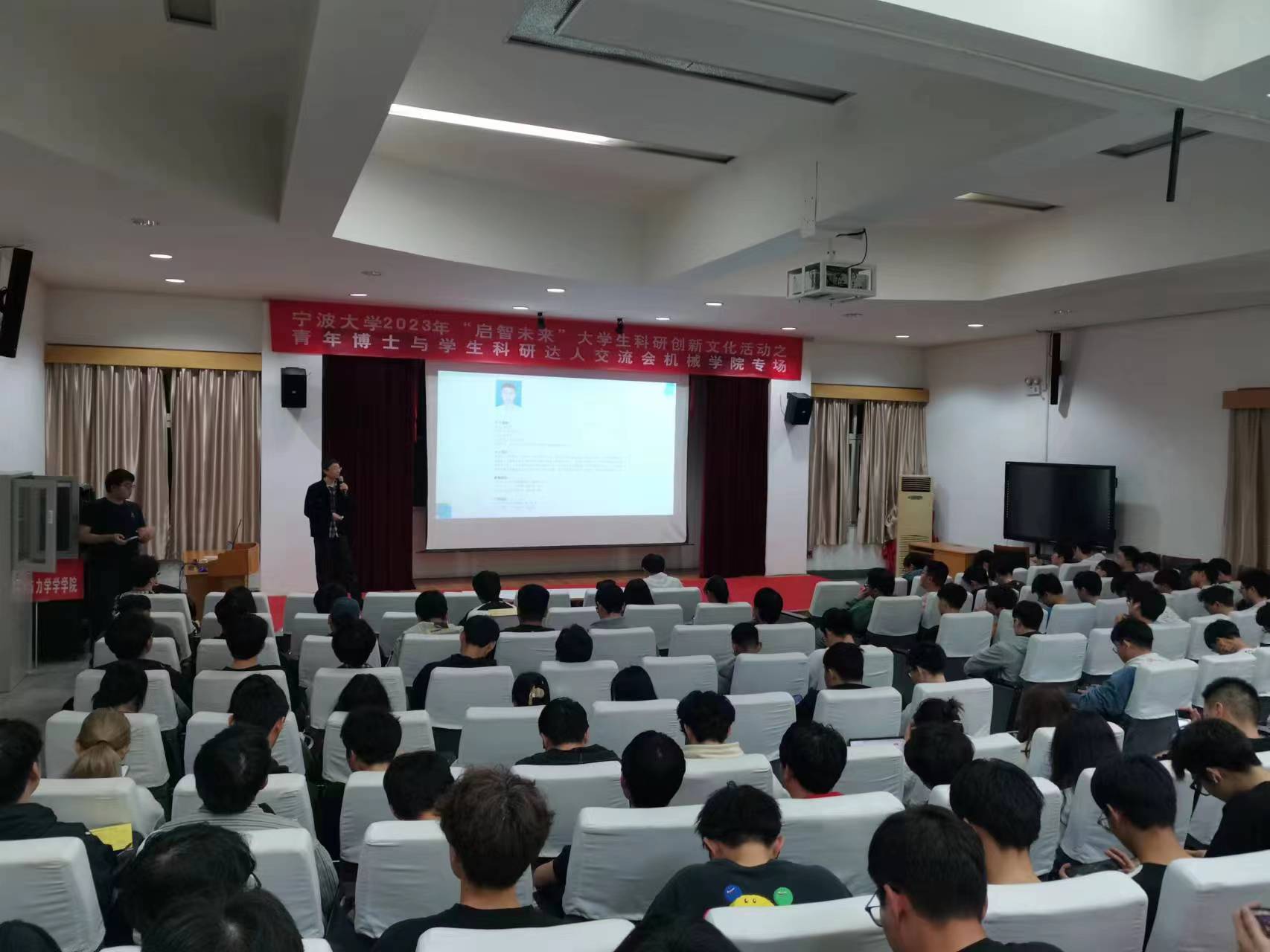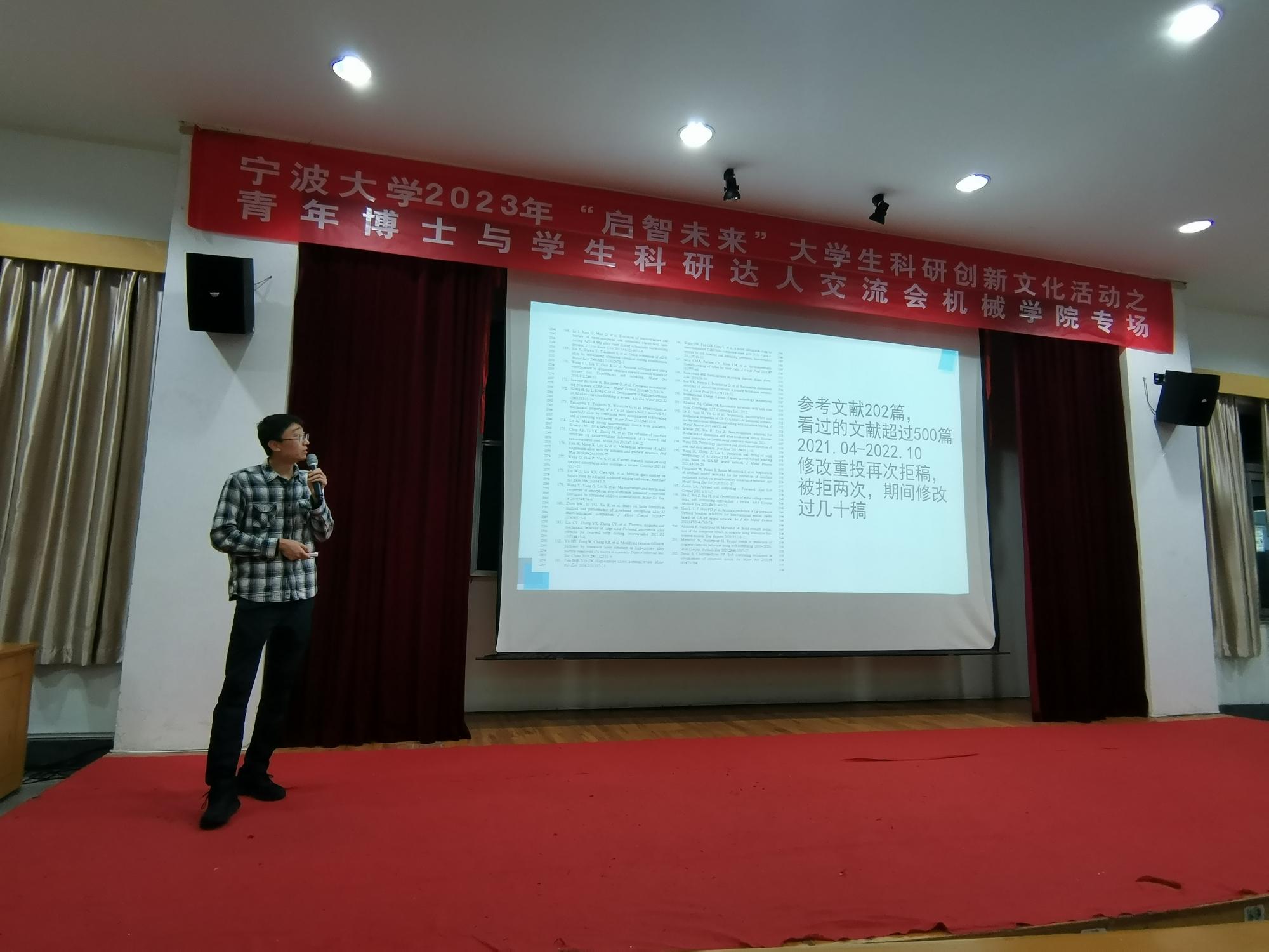 在绣山工程楼三楼报告厅举行青年博士与学生科研达人交流会。