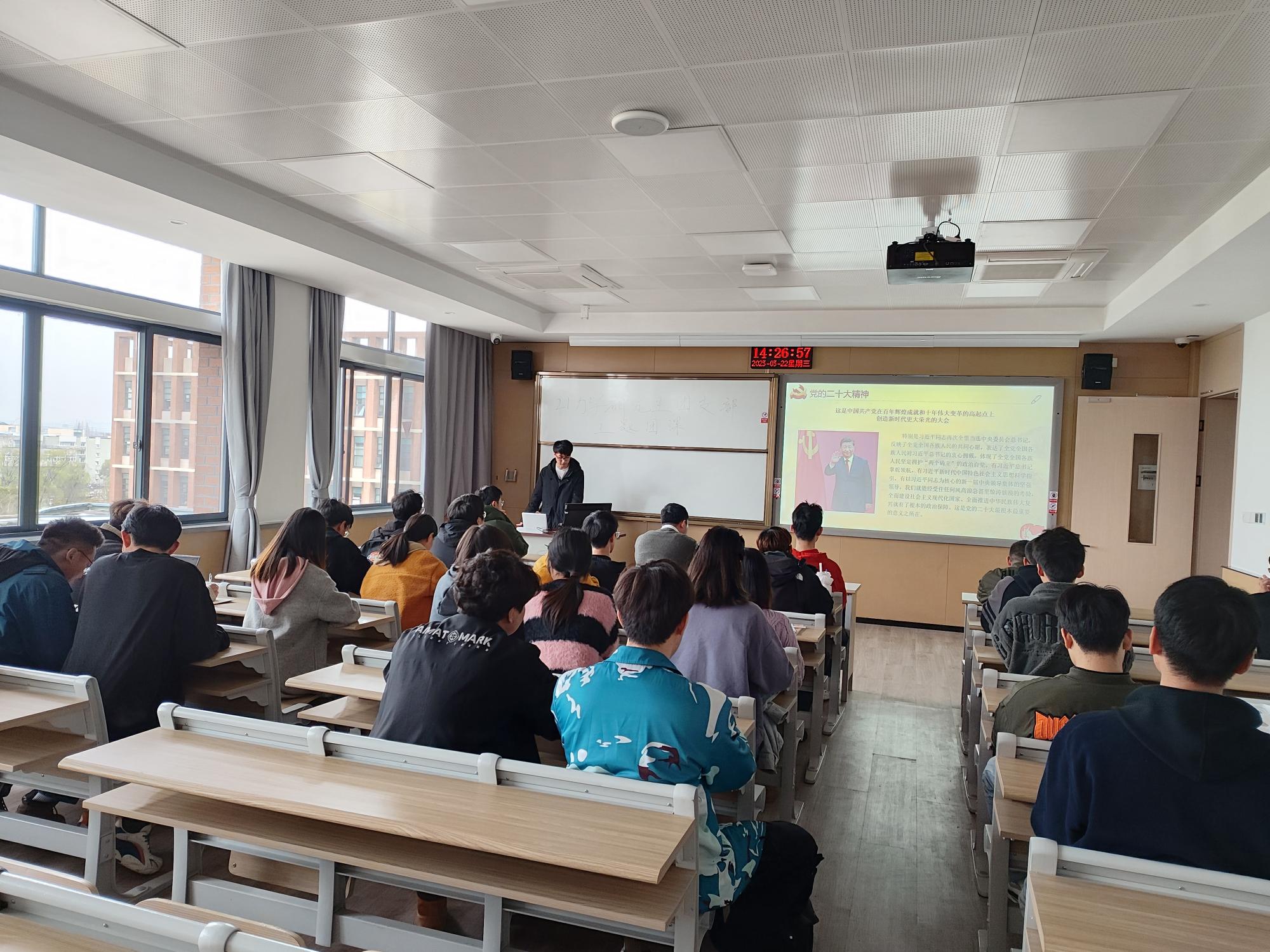 班会主题围绕学习二十大和两会精神、防范电信网络诈骗、网络文明行为规范、传染病预防以及同学们关注的热点问题等方面展开,根据班级同学们的在校情况选择腾讯会议、教室、会议室或大草坪等地展开班会活动。其中,20机研4班、5班、6班联合开展“学习二十大精神,争做新时代青年”的主题班会,结合两会热点,讨论了大学生毕业返乡等话题。21力学研究生班以网络暴力为主题,介绍了最近网络暴力引起的悲剧和被网暴后的处理方法并号召大家文明上网,之后班上同学也相互交流了论文进展与科研难题。22机研9班学习了两会精神,借两会议题“规范网络文明”强调了网络文明的重要性,余杰老师参会并做会后总结。