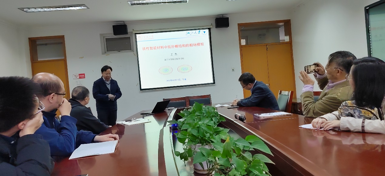 王杰教授应实验室邀请,在绣山工程大楼208会议室作了题为《铁性智能材料中拓扑畴结构的相场模拟》的学术报告。报告由机械工程与力学U体育网