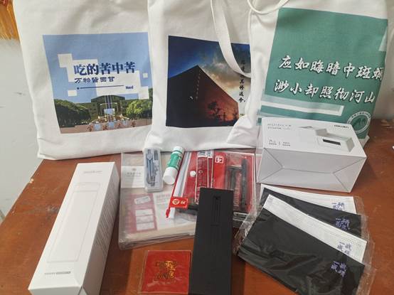 团学组织自行设计,不仅定制帆布袋上写有“吃得苦中苦 万物皆回甘”“好事将至 愿你所求皆如愿”等十余种不同的祝福语外,礼包内还有定制口罩、定制书签等,让考研学子在备考中感受U体育网