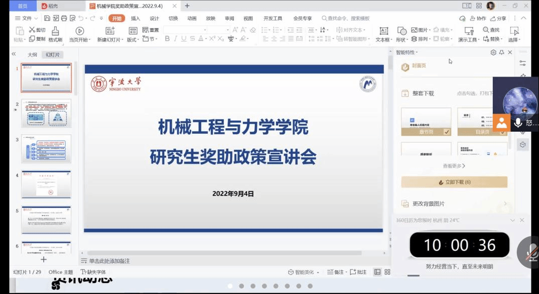 在腾讯会议上进行22级研究新生奖助政策宣讲会。