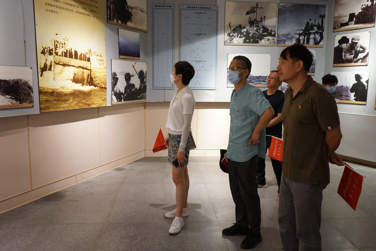 7月14日上午,全体党员参观了一江山岛登陆战纪念馆,主展厅陈列着一江山岛战役以及战后重建工作的图文、实物等资料。展厅内还设有多个展柜,陈列着一江山岛战役中使用的物品、烈士遗物和参战老同志捐赠的物品等。一幅幅照片、一件件实物,都在向我们诉说着那段战火纷飞的红色岁月,讲述着革命先烈不怕牺牲、只为胜利的“一江山精神”。