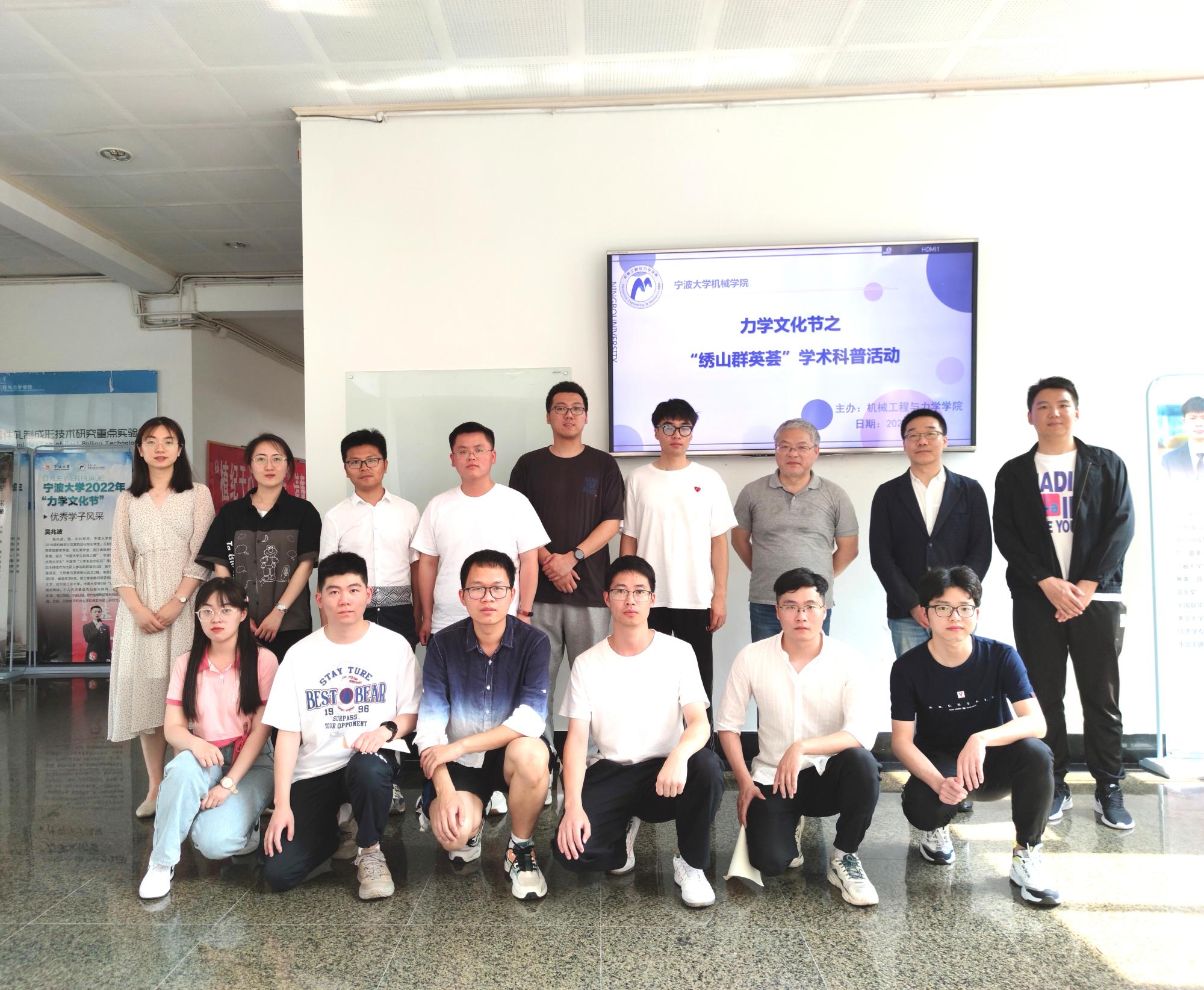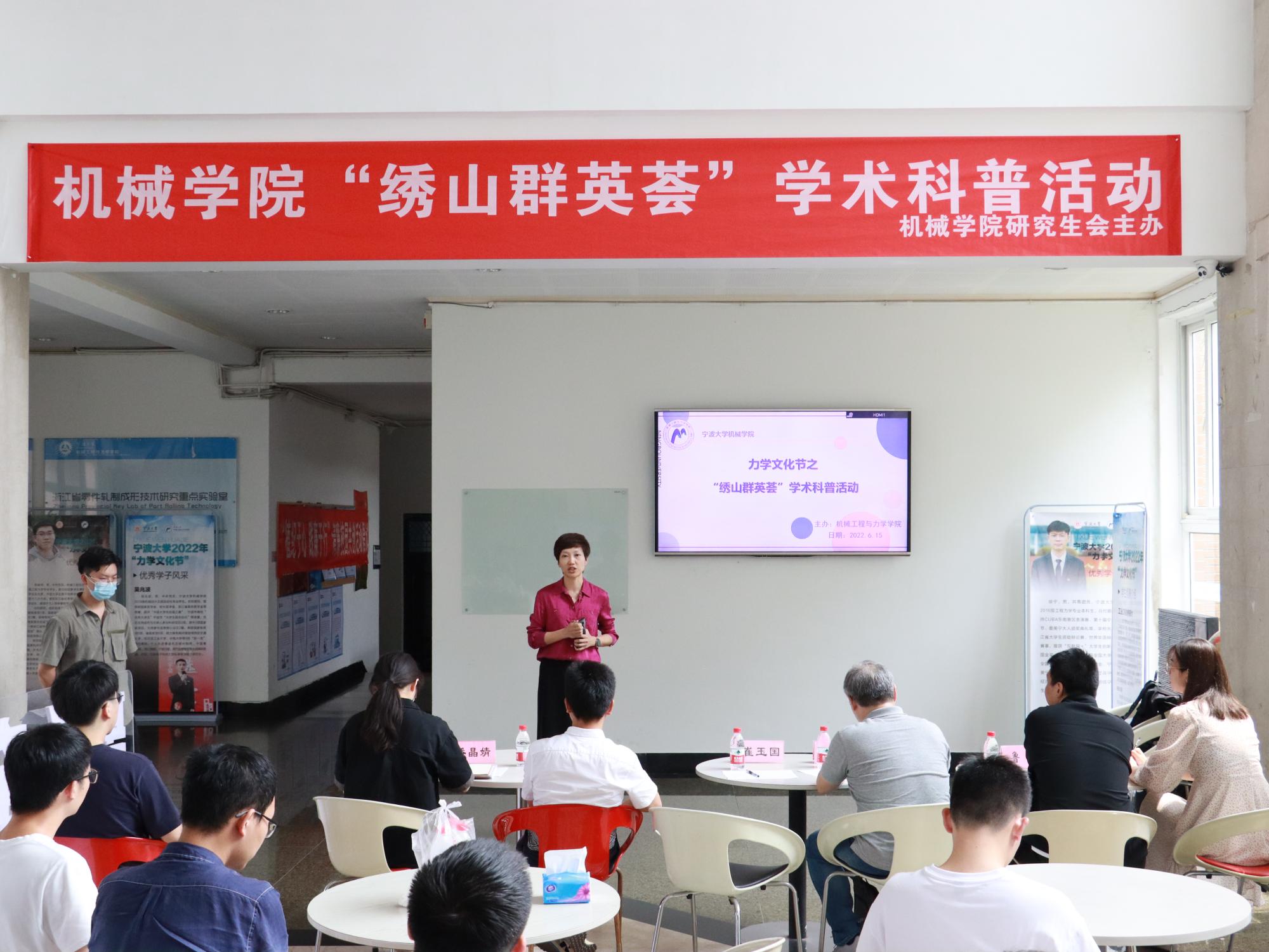 在绣山工程楼一楼大厅展开“绣山群英荟”学术科普活动,周风华、崔玉国、周吕文、鲁勇、晏程程和潘晶婧六位老师出席担任评委老师。