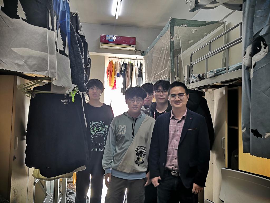 党政领导班子成员走访了分布在甬江1号楼、甬研1号楼、南门3号楼的本科生和研究生寝室。学工办辅导员和部分本科生班主任参与了本次走访活动。