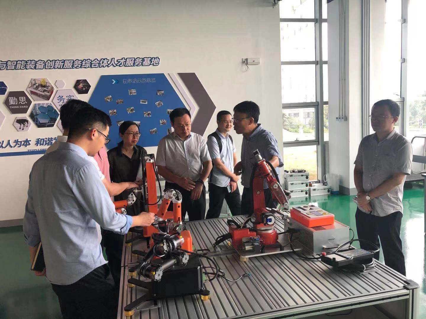 随后,阮院长一行来到了智能装备创新综合体人才服务基地,在这里看到了企业对于机器人专业人才的培训设备以及项目。随行教师通过与企业技术人员的交流,了解到企业在智能机器人控制层的创新。机器人控制层经过数据采集、计算、分析,遵循一定的智能策略,对各个执行机构进行协同控制,可以实现自主智能。