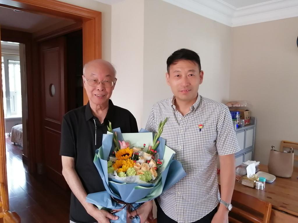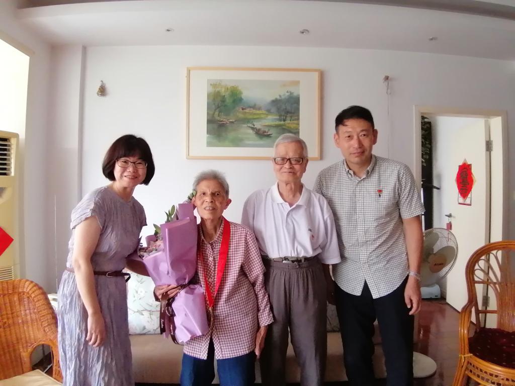 随后,胡泓书记一行分别走访慰问了老党员张懋炯老师和金美文老师。胡泓书记对两位老党员的身体状况和生活情况进行了详细了解,祝愿他们身体健康,并代表党组织向两位老党员颁发了“光荣在党50年”纪念章,感谢他们在党的教育事业方面作出的贡献。张懋炯老师和金美文老师感谢党组织对老党员的关心关爱,并结合疫情防控工作,赞扬了党的领导的伟大。