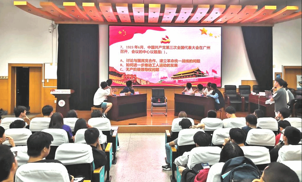 本次竞赛内容紧紧围绕党史、新中国史、改革开放史、社会主义发展史等相关知识点,具有很强的知识性、时政性和针对性。活动分为三个环节:学习强国挑战赛、你划我猜限时赛、党史知识抢答赛。在答题过程中,各代表队参赛选手党史知识丰富,现场表现优秀,特别是抢答环节互不相让、你追我赶,不仅展现了精彩纷呈的党史文化知识竞赛,也让现场的学生进行了一次党史知识的再培训,现场观众互动答题环节,气氛紧张而热烈。经过激烈角逐,发展对象第二小组获得一等奖,预备党员第三小组获得二等奖,入党积极分子第二小组获得三等奖。
