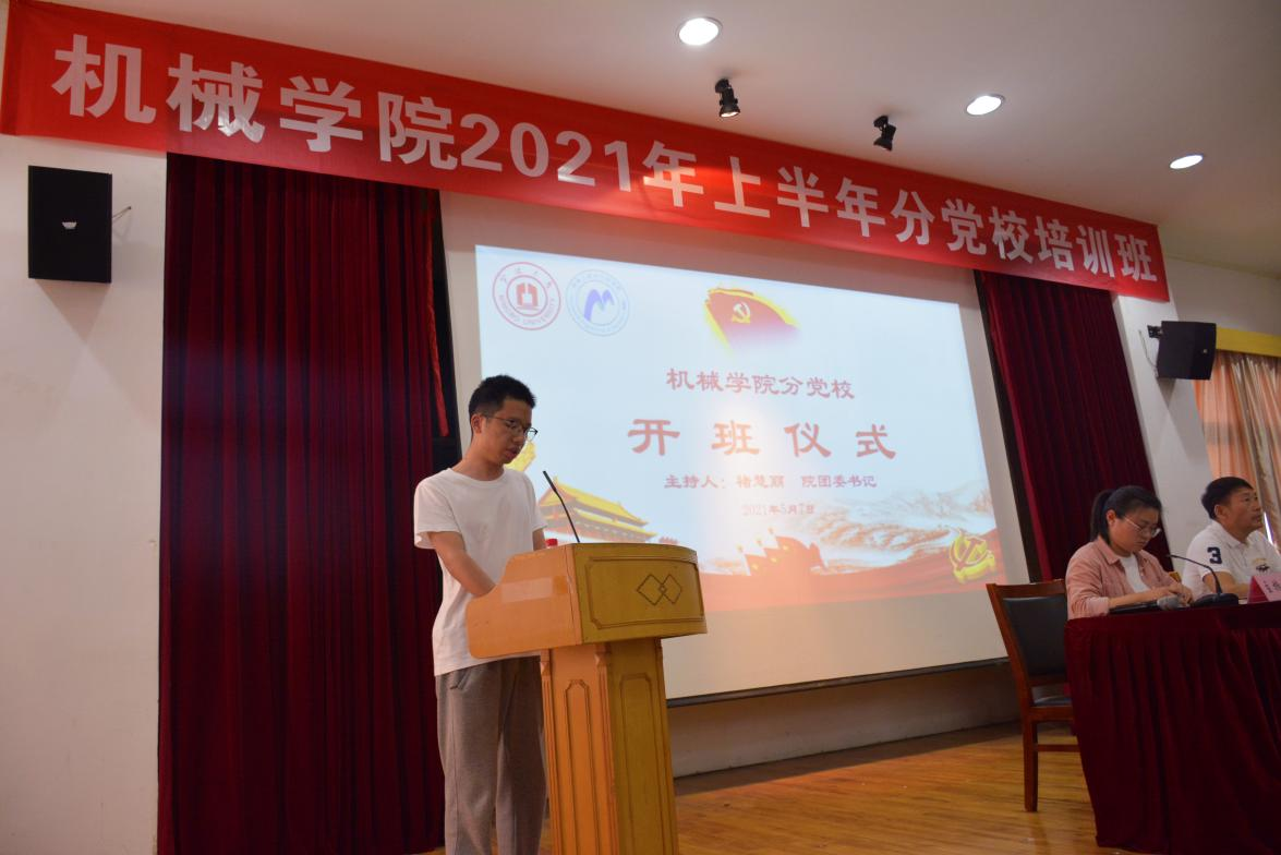 在绣山工程楼三楼报告厅举行第24期预备党员培训班、第9期发展对象、第31期入党积极分子培训班开班仪式,学院党委书记胡泓、专职组织员张勇、团委书记褚慧丽、各学生党支部书记和本期党校学员参加了开班仪式,会议由褚慧丽主持。