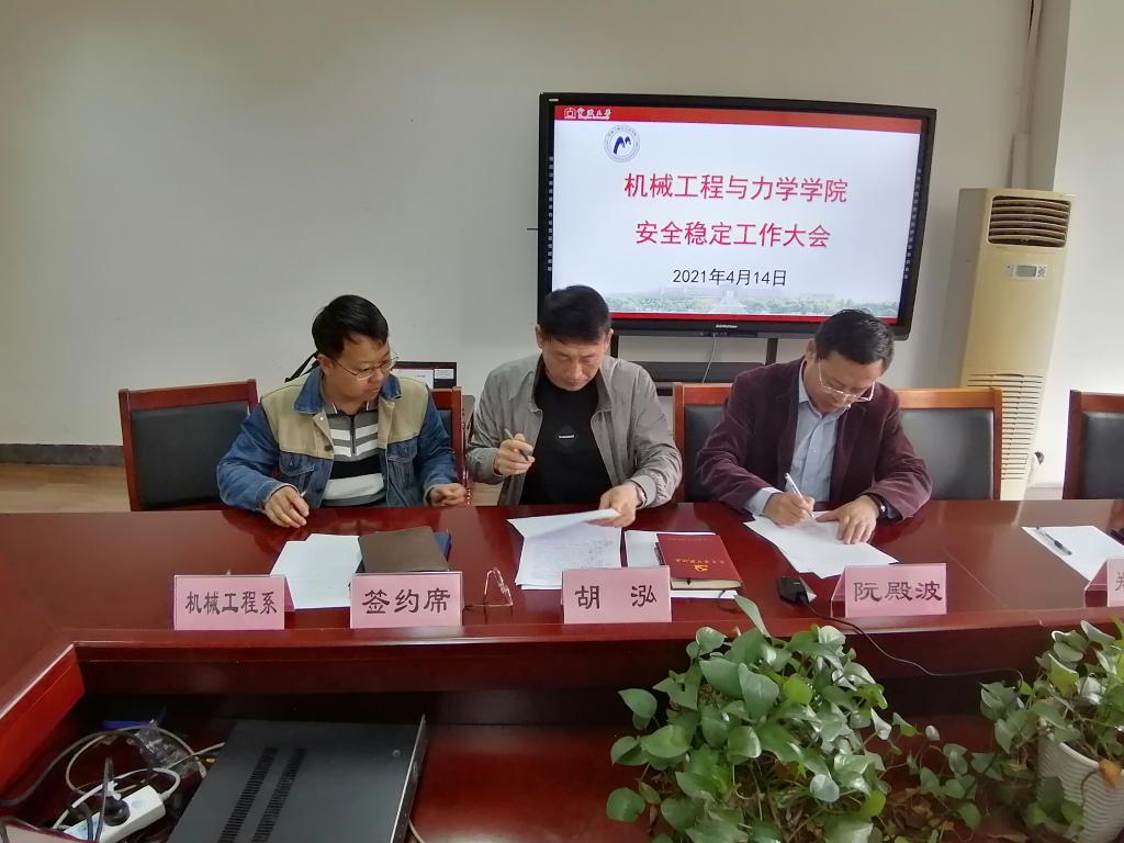 基层组织代表机械工程系签订了创安责任书,其他各系、各科研实验室及各教学实验室创安责任书将于会后签订,层层落实安全工作责任制。