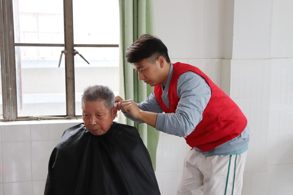 当天上午,来自各学生支部的党员们早早到达了章水镇应虞房安老院,与海曙阳光公益团队共同展开志愿服务。大家分工明确,各自将老人们扶至二楼活动室集中,为他们量血压、洗头、理发。之后,帮老人吹干头发,耐心与他们聊天。同学们还积极帮忙打扫卫生、擦拭窗户。