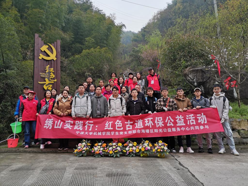 研究生第二党支部、工程力学与车辆工程本科生党支部成员,联合海曙区阳光公益服务中心志愿者,在海曙区横街镇与余姚市大隐镇接壤的惠民村“红色古道”上,开展了“重走红色之路,共建绿水青山”特色主题党日活动。