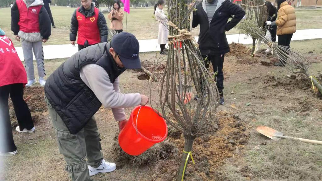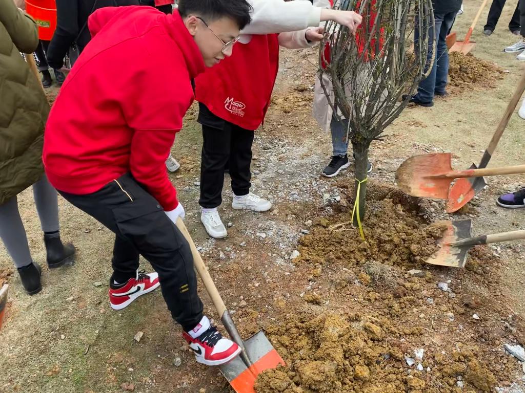 认领栽种了四棵梅花树苗,期待它们早日生根成长,为校园再添一抹春的气息。