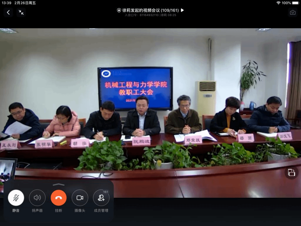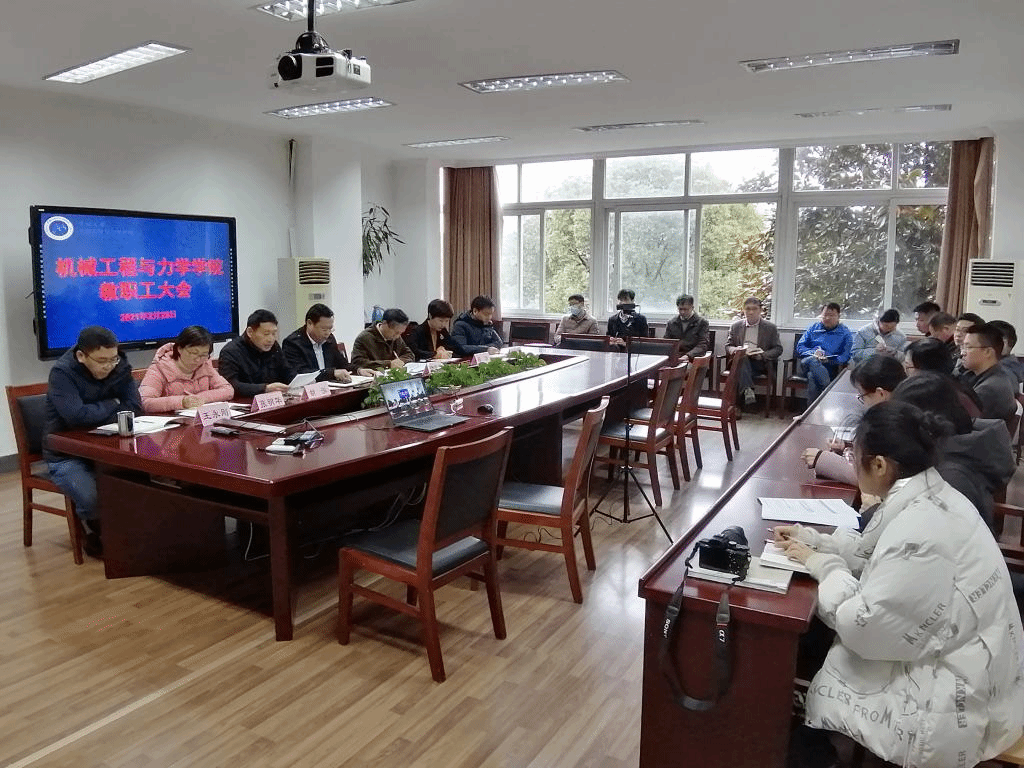 党政领导班子和各系/中心主任、副主任,各办主任出席了现场会议,其他教职工参加了钉钉视频会议。会议由党委书记胡泓主持。