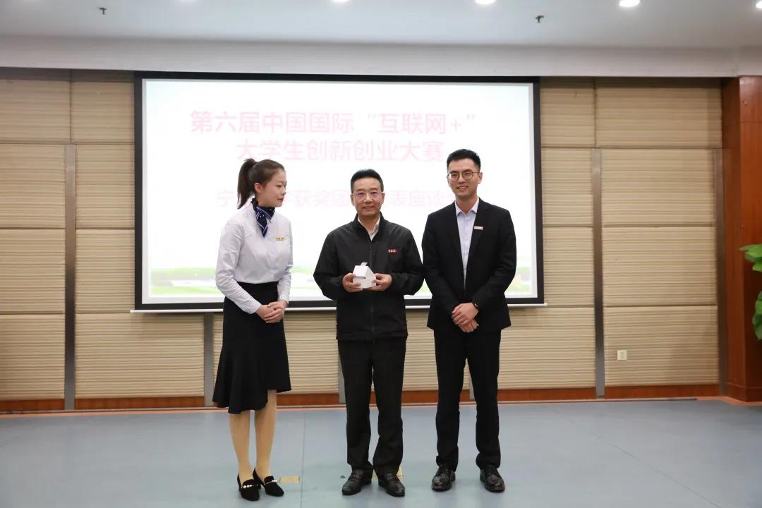 获奖团队师生代表表示祝贺并赠送纪念品和鲜花。国赛金奖项目,机械U体育网