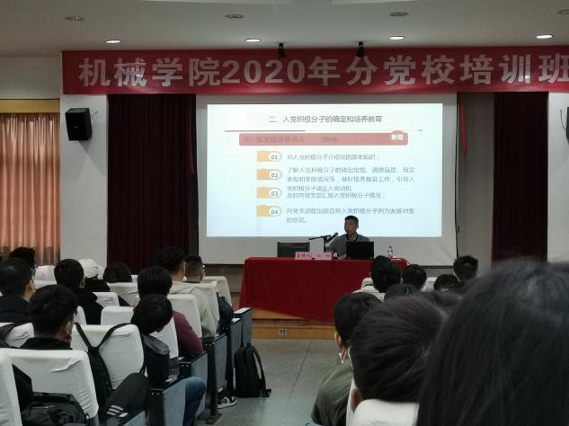 专职组织员、分党校办公室主任张勇老师和院学生党建中心主任,分党校办公室副主任洪松老师在绣山工程大楼三楼报告厅,分别以“端正入党动机,争取早日入党”和“坚定入党初心,了解入党流程"为主题,为广大分党校培训班学员进行党课宣讲和流程解读。