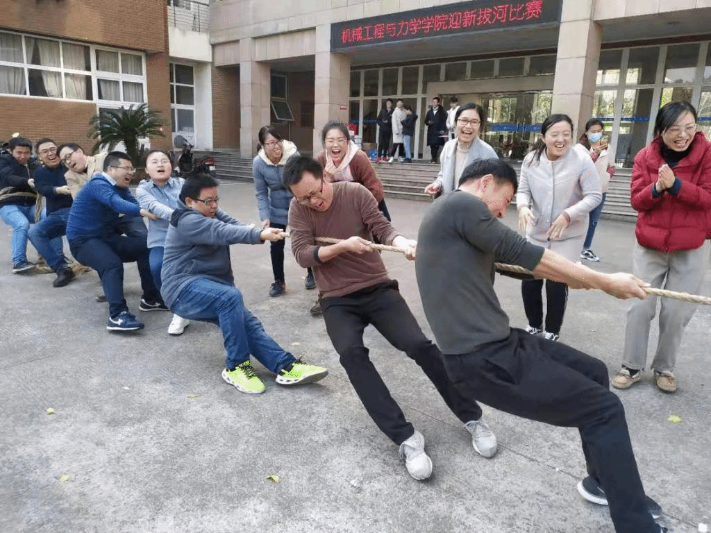 “迎新年”教职工拔河比赛。本次拔河比赛以基层组织为单位,每单位最多可派两支队伍参加比赛,抽签分组后采取“小组赛—淘汰赛—决赛”的比赛形式。