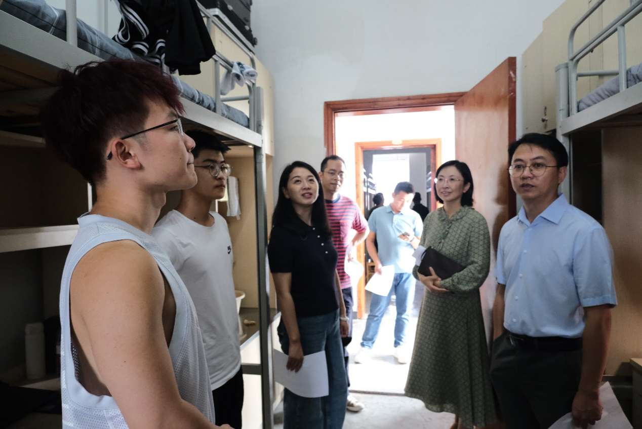 党委书记王智腾,副院长张明华,党委副书记沈妍伶,以及专业辅导员、新生班班主任、班助等前往新生寝室,实地了解学生报到入学情况。
