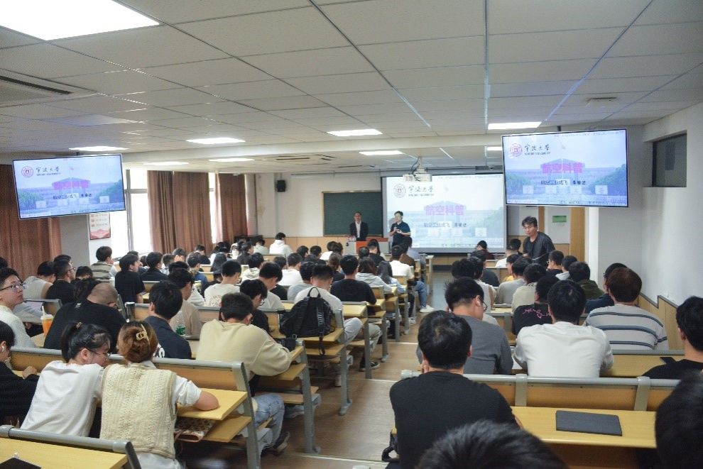 本次活动由宁波市科学技术学会主办,邀请到航空工业成飞设备公司高级技术师李国进和中国航空制造技术研究院研究员李继贞进行专业讲解。讲座中,两位航空领域的专家为现场师生详细阐述了航空科技的发展历程、我国的航空事业取得的辉煌成就以及未来航空领域的展望。活动现场气氛热烈,学生们纷纷表示受益匪浅,也深切地认识到,近年来随着国际经济形势的变化,我国在一些关键领域面临“卡脖子”难题,全面破解“卡脖子”的难题,加快实现高水平科技自立自强是新一代青年面临的艰巨而光荣的使命。