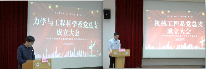 在绣山工程大楼三楼报告厅分别召开力学与工程科学系党总支、机械工程系党总支成立大会。两个系的全体党员参加会议,U体育网