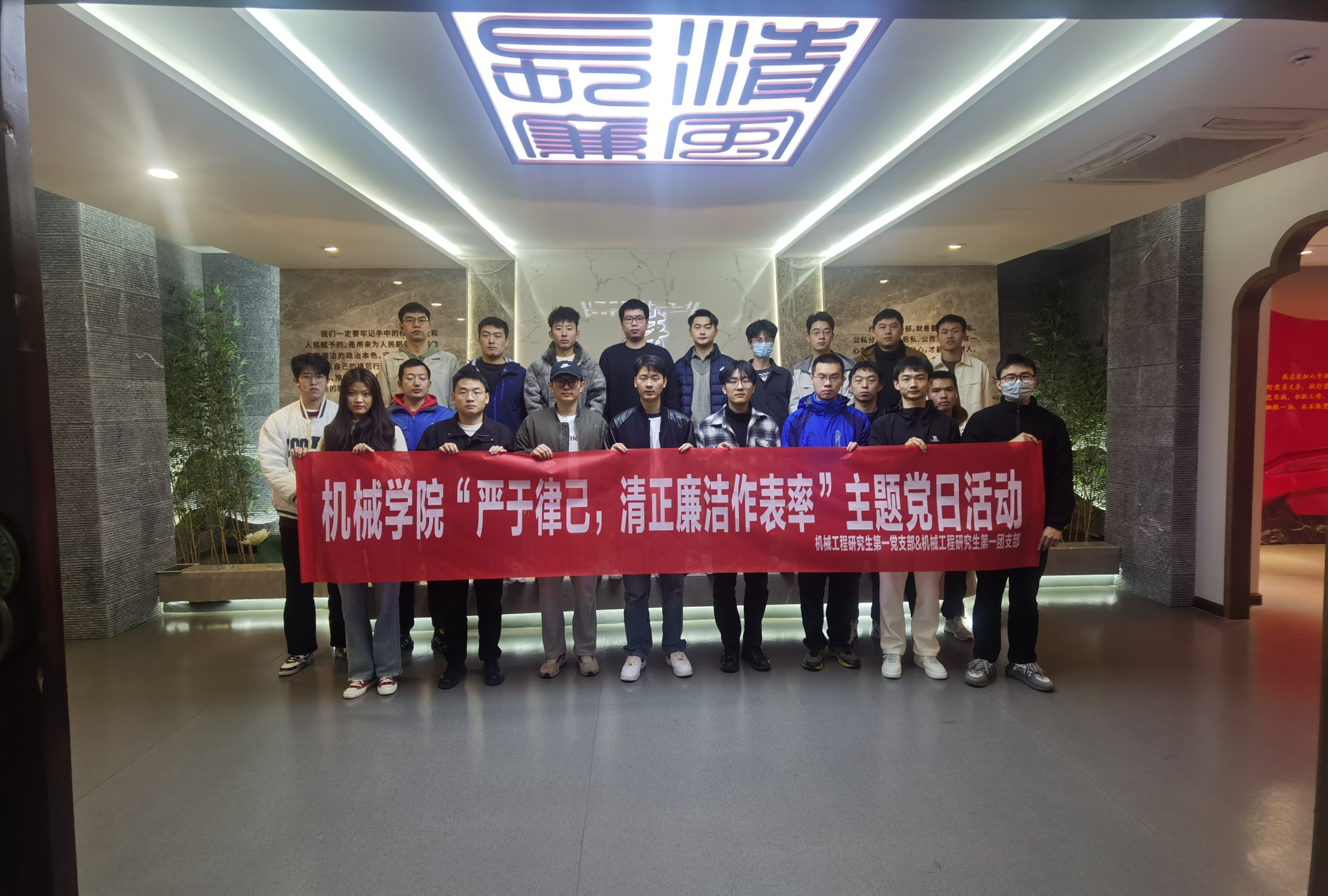 机械工程研究生第一党支部前往北仑区长山清风馆开展“严于律己 清正廉洁作表率”主题党日活动,20余名党团员参加。