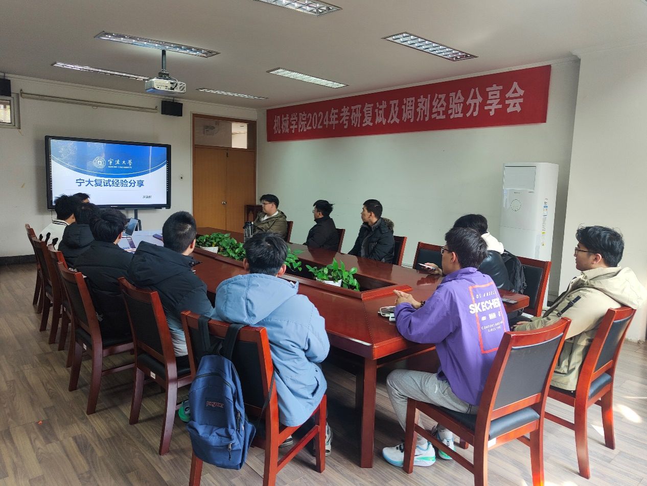 力学专业的叶思根向学弟学妹们讲述了复试情况、笔试及面试所需材料,并给予了面试建议。以综合成绩排名专业第二录取的高新阳则分享了专业课笔试、英语面试及专业课面试的技巧。本科也就读于宁大,机械专硕,初试成绩396,复试成绩83.05,综合排名专业第一的金靖围绕如何选取专业和院校、制定复习计划、调整心态以及复试中的注意事项等方面谈了自己的亲身体验,向大家分享了复试中的技巧,并贴心给出建议,强调同学们要打好专业基础,调整好心态迎接复试。调剂也是考研复试过程中同学们十分关注的问题。在活动中,一志愿报考国防科技大学,调剂期间获得3所大学的复试通知且有着丰富调剂经验的张德伟向大家表明要注重关注调剂信息,选择专业院校等综合适合的方向进行考量。期间,毕业班同学还与各位学长就相关问题进行了交流,各位考研同学们感觉都收获颇丰,对接下来的复试更加充满了信心。