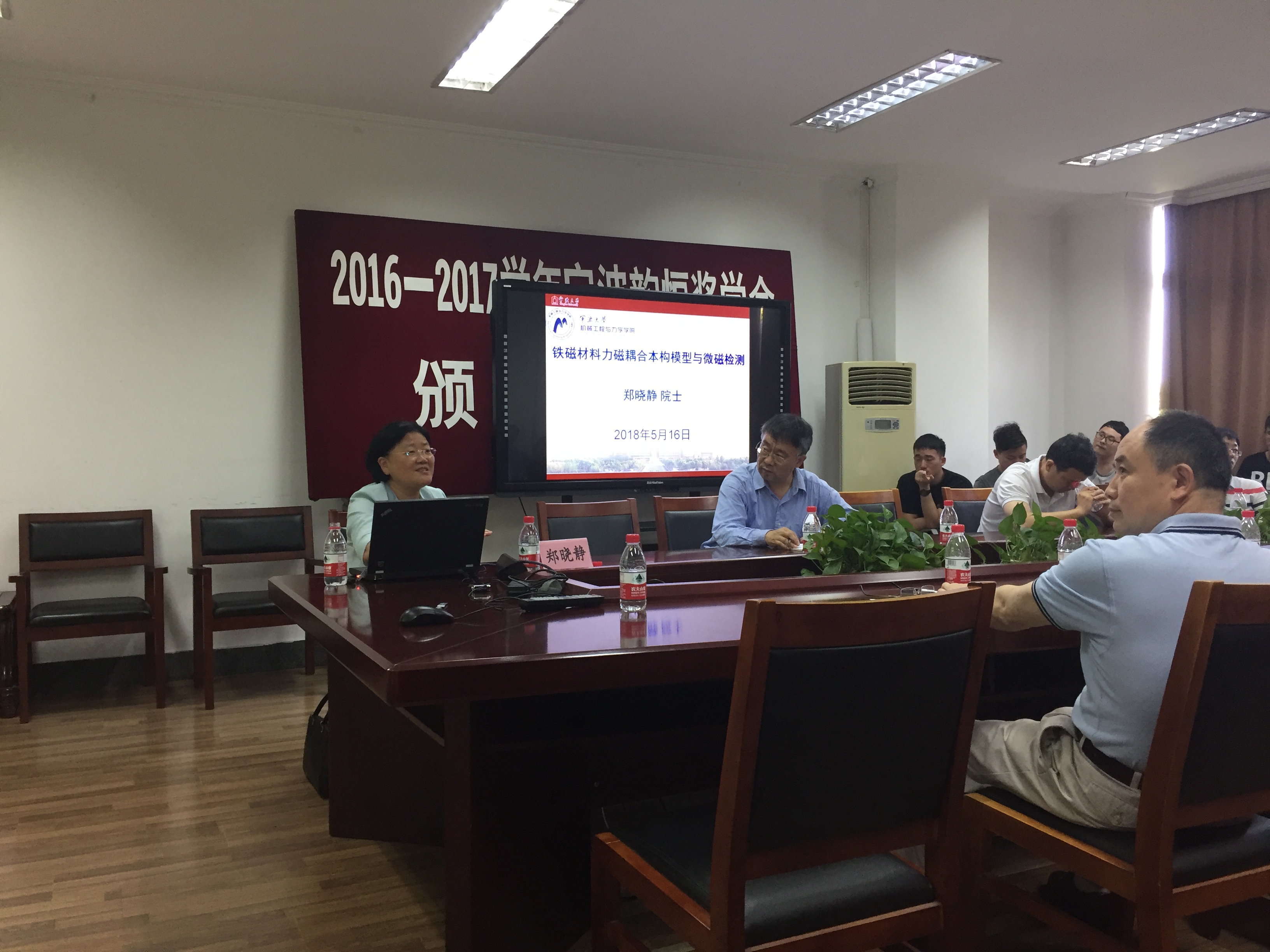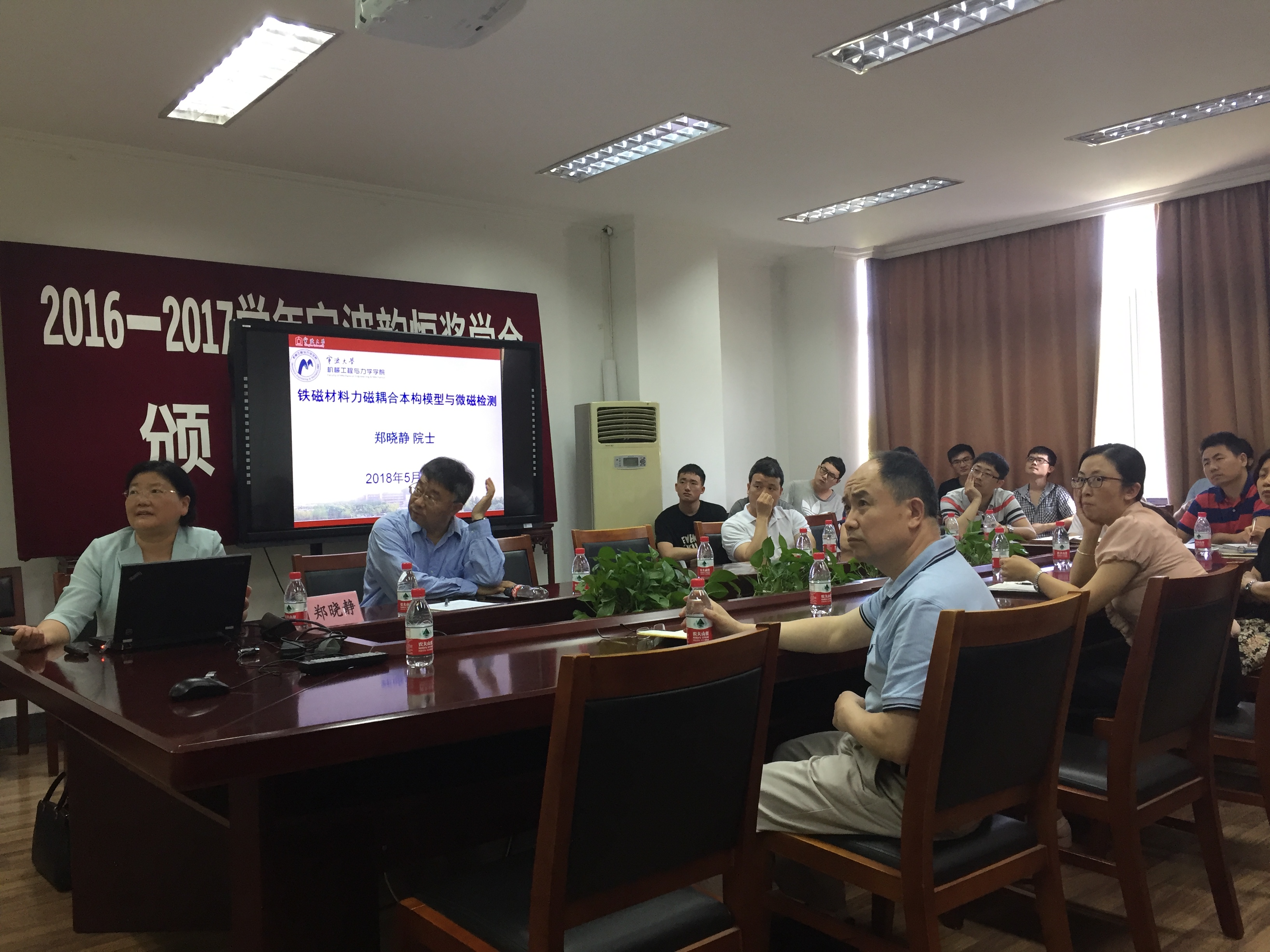做学术交流,并做了一场热情洋溢的学术报告,报告题目为:铁磁材料力磁耦合本构模型与微磁检测,副院长王骥教授主持。