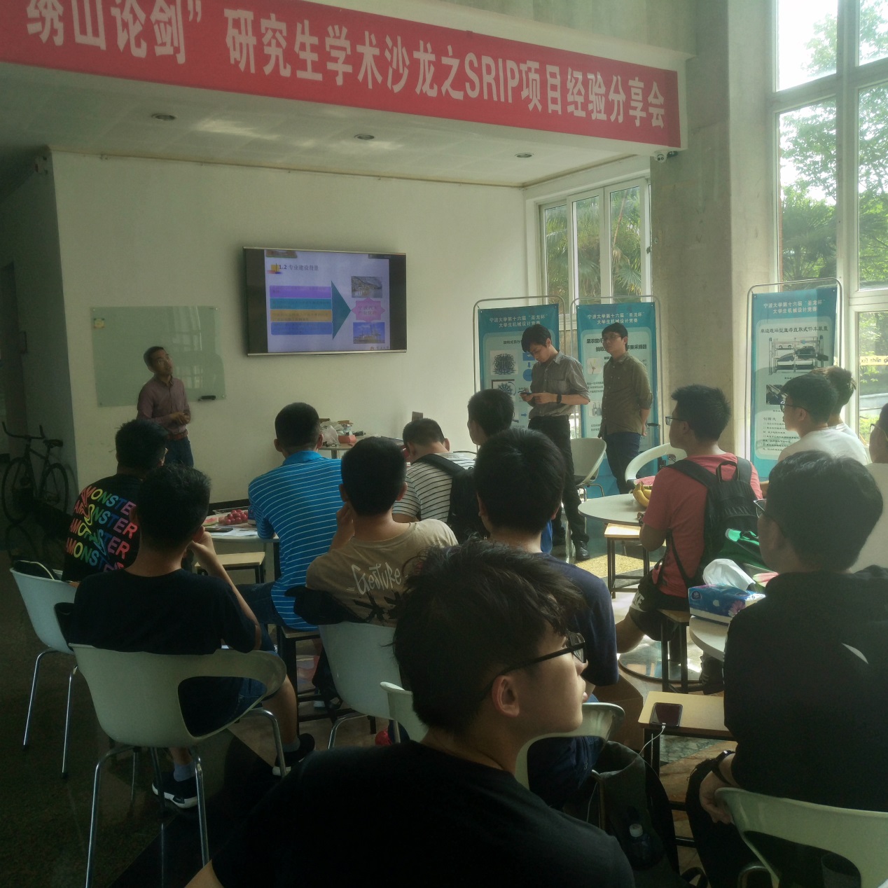 在绣山工程楼一楼大厅举办了“相约星期二”——车辆工程专业论坛。本次活动由车辆工程系主办,马廷锋、陈剑斌、黄斌、左万里、黄家瀚、金育安等老师与四十余位同学一起针对车辆工程专业进行了交流。