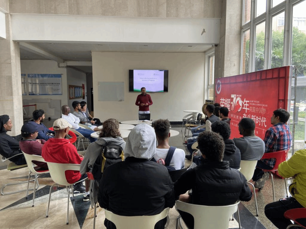党委副书记邵丽老师,国际部部长黄斌老师,2016级本科留学生和全体留学生研究生参加了会议。会上,晏程程老师对本科毕业生如何申请硕士,签证及奖学金给予详细说明;黄斌老师结合个人求学经历,督促学生制定未来计划,明确目标;2017级研究生代表HAMZAH仔细分析了本科生与研究生学习模式与论文书写之间的不同,并就师生关系分享自己的一些心得;邵丽老师鼓励同学们走出舒适区,积极参加各类实践活动,同时,建议同学们多结交中国朋友,深入了解中国文化,积累人生阅历,提升自身的竞争力。活动结束时,所有参会人员一起合影留念。很多同学表示,本次经验分享收获颇多,希望以后U体育网