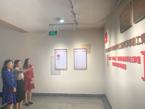 在支部书记张明华的带领下,张芝萍、孙欢欢一行从绣山工程大楼一楼大厅看起,沿着楼梯逐层查看了“双带头人”教师党支部书记工作室的建设情况。张明华先介绍了U体育网